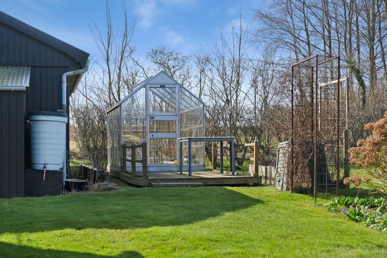 Yderligere er der godt muret redskabshus / værksted, garage samt drivhus.